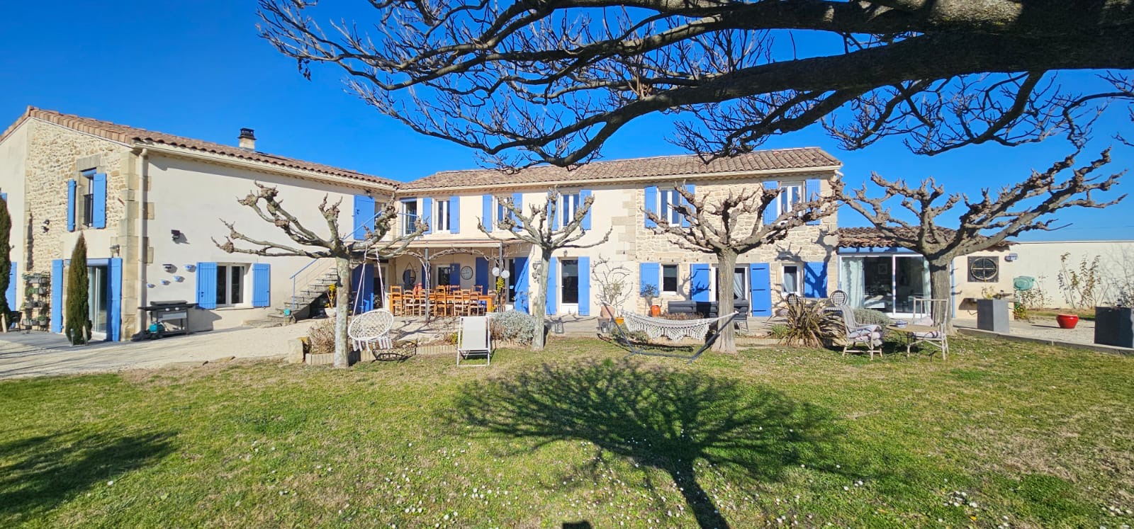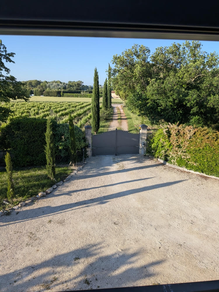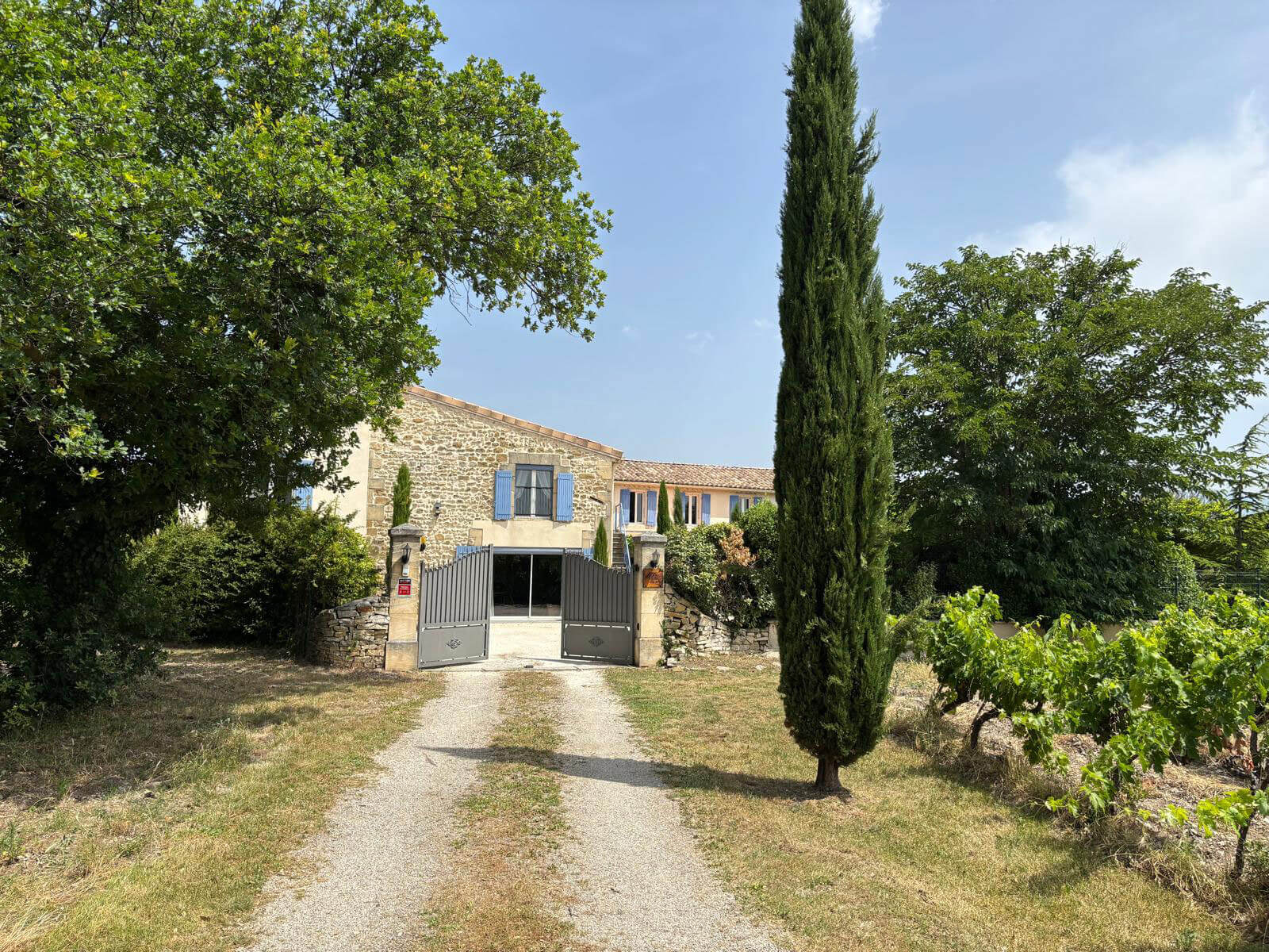 La bâtisse en partie en pierre associe tout le charme des mas provençaux avec le confort d’aujourd’hui. De majestueux cyprès bordent l’entrée comme une invitation à la quiétude. Les vignes environnantes rappellent la richesse du terroir local.
